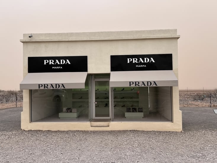 A environ 25-30 km de notre destination on s’est retrouvé pris dans une tempête de sable. D’un coup il a fait sombre, l’horizon est devenu orange et la visibilité s’est drastiquement réduite. Et d’un coup on ne voyait plus à un mètre devant nous, on n’arrivait pas à savoir s’il y avait quelqu’un devant nous et on espérait que si quelqu’un nous suivait il nous voit avant de nous tamponner. Cela a duré sur quelques centaines de mètres et ça c’est de nouveau un peu éclairci. On a même réussi à voir la pub Prada au milieu de nulle part.