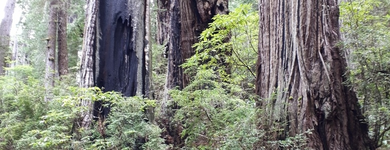 On a retrouvé Ulysse sur le parking d'un cinéma, à Crescent City. On rattrape chacun nos histoires des jours passés - nous l'intérieur des terres de l'Oregon et ses paysages, lui la côte, toujours, et les rencontres qu'il y a faites, à pieds ou en stop. Il nous a aussi ramené des spécialités locales. De là, on roule dans l'impressionnante forêt de Redwood jusqu'au premier camping que l'on croise. On est accueillis par Randy, qui nous assure que l'on fait l'affaire du siècle en restant : le camping est équipé de douches à l'italienne, le café est gratuit le matin et on peut avoir plusieurs emplacements pour nous tous seuls juste au bord de la rivière.