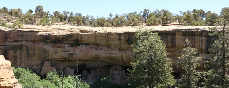 Le lendemain matin, le réveil nous offre la vue sur les montagnes et la - relative - verdure, des paysages qui nous avaient manqué dans le désert. On prend un petit déjeuner dans le café du camping (luxueux, on vous avait dit), tandis que Margaux passe un entretien par Skype pour son job d’été. Une fois prêtes à décoller, on se dirige vers un des chemins de randonnée du parc. La matinée est déjà bien avancée, et le soleil est déjà trop haut dans le ciel pour que l’on puisse marcher très longtemps. Après cinq ou six kilomètres dans les canyons de Mesa Verde, à voir de loin les habitations creusées dans la pierre il y a des siècles, nous rebroussons chemin vers le parking. Une douche, une salade de tomates et nous revoilà parties sur les routes.