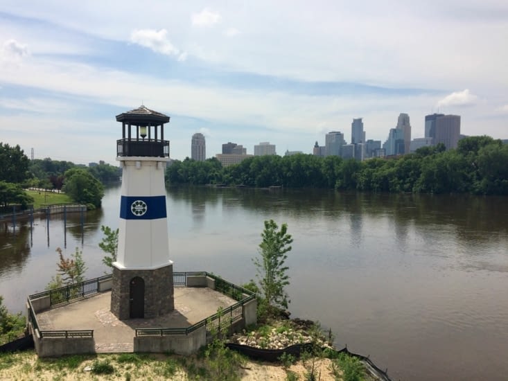 Minneapolis, ville la plus peuplée de l'État, constitue mon unique halte dans la région. Pour faire court : cette étape ne me marquera pas particulièrement. De visite durant un vendredi ensoleillé, je n'y ai rien trouvé de particulièrement singulier. J'ai même parfois eu le sentiment de visiter une ville morte, tant les rues et parcs m'ont semblé peu fréquentés. La traversée de l'État m'est également apparue relativement quelconque. Au final, seul un château d'eau à l'architecture très singulière a réellement retenu mon attention. C'est dire !
