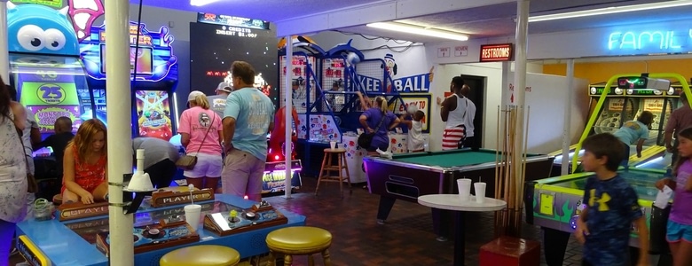 Panama City Beach nous surprend. Rien ne nous avait préparées au choc. Quand on y arrive, il fait nuit, et on ne trouve pas la plage, qui est cachée derrière des barres d’immeubles et d’hôtels. La route est éclairée par les néons des magasins de souvenirs. Mini-golf, château hanté, stands de tir… on se croirait à une fête foraine. Les américains sont tous en goguette, chemise hawaïenne en étendard et robe de plage au vent. On se balade en brandissant notre appareil photo pour immortaliser cette ambiance un peu irréelle. Tout brille, les voitures klaxonnent en diffusent de la musique, fenêtres grandes ouvertes, les magasins sont ouverts jusqu’à minuit ou presque…