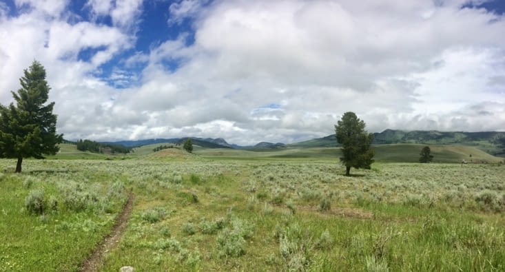 Alors que j'avais prévu de consacrer trois ou quatre jours à ce parc, en fonction du peu d'informations que j'avais et de ce qui m'avait été conseillé, je n'y serais finalement resté qu'une journée et demie. Plusieurs raisons à cela. Tout d'abord, la météo : c'est sous la pluie que je suis entré dans le parc. La seconde journée a également été marquée par quelques averses. Ensuite, en y accédant par l'entrée nord, on accède en premier lieu à des plaines entourées de montagnes, où l'on retrouve notamment de grands troupeaux de bisons. Après être passé dans le parc national des Prairies (Canada), le parc national Theodore Roosevelt et le parc national des Badlands, je commence à perdre l'étonnement et l'excitation des premières découvertes. Puis, passé l’émerveillement des premières sources d'eau chaude et des premiers geysers, j'ai eu un peu le sentiment de voir et revoir toujours la même chose. Enfin, c'est certainement le premier parc vraiment très fréquenté que je visite. Et la différence avec les précédents était vraiment notable. Rien d'étonnant, c'est un parc extrêmement connu, extrêmement populaire, et j'entre dans le cœur de la saison estivale. Qui plus est, la quasi-totalité des visiteurs avait le même profil : américain, voyageant en famille, ne s’égarant que très rarement à plus de 2/3 kilomètres de la grosse voiture pour prendre un maximum de photos (dont une grande partie de selfies), sans donner l'impression de réellement profiter des lieux. Pour avoir une image de l'autre partie des touristes, remplacer « américain » par « asiatique », « famille » par « groupe » et « grosse voiture » par « autocar ». C'est marrant un instant, mais ça devient rapidement pénible à voir et à côtoyer (en tout cas en ce qui me concerne).