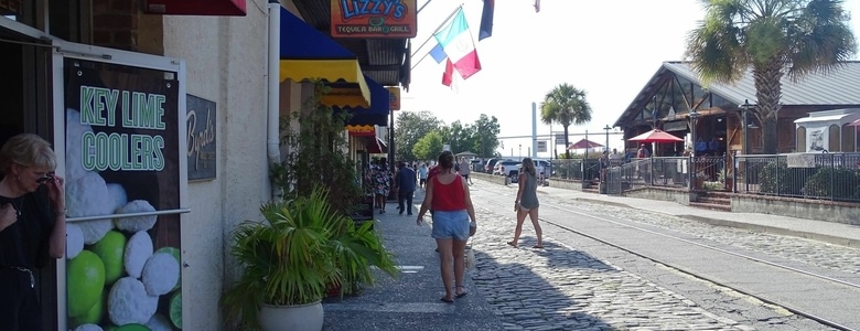 Savannah nous plaît tout de suite. C’est une petite ville de style colonial, avec des rues pavées, des façades biscornues, beaucoup de petits squares ombragés, des fontaines et des cimetières qui se visitent comme des parcs. On va se promener sur River street, au bord de la rivière, sur une rue commerçante certes touristique, mais très mignonne. On rentre dans tous les magasins pour profiter des free samples, les échantillons gratuits proposés par les magasins de pralines et de fruits à coque, qui sont une des spécialités géorgiennes. Et comme il y a de nombreux magasins, les free samples feront office de dîner.