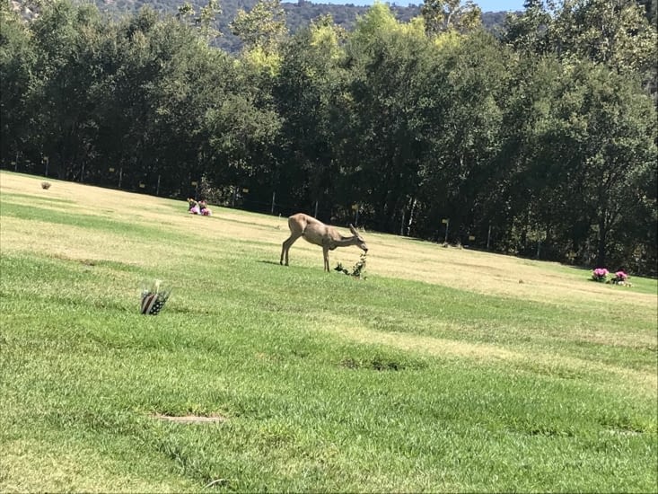 La journée a été magnifique ! Il a fait beau et chaud. Près de 10• de plus qu’hier soit 33• ! Vive la climatisation ! Après notre shopping nous avons fait un arrêt dans l’un des plus grand cimetière de Los Angeles. C’est assez déroutant. D’abord c’est gigantesque, ensuite la plupart des tombes sont de simples plaques posées sur le sol au milieu d’immenses étendues vertes (étonnant ici vu que toute l’herbe ou presque est brûlée donc jaune) , il y a ici et là des petites tentes avec des chaises devant qui attendent les gens pour un enterrement. Il y a également un immense colombarium et des invités surprenants qui ont leur manière d’hono Les morts ..