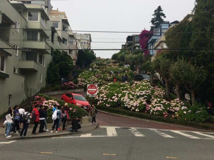Heureusement, même si la fraîcheur est omniprésente en ville, Karl ne l'est pas et ne m'a pas empêché d'apprécier San Francisco, ses curiosités et son côté atypique durant trois jours de visite. L'une de ses singularités est d'ailleurs à n'en pas douter ses collines et ses rues en pentes, très, très en pentes (jusque 31,5° dans une portion de Filbert Street) !