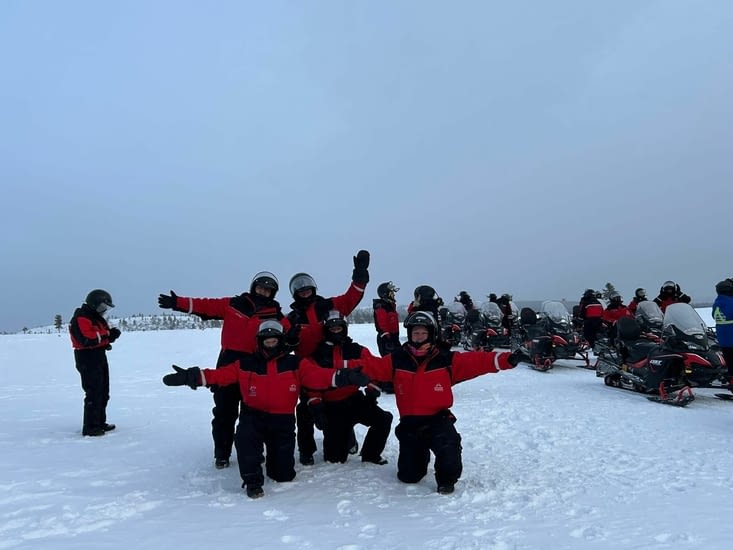 Par une journée glaciale, un circuit de 50 km en moto neige. Des plateaux et des forêts, des courbes et de belles descentes. Un repas le midi bienvenue, une soupe au saumon, le tout avant de repartir dans le froid. Une belle journée.