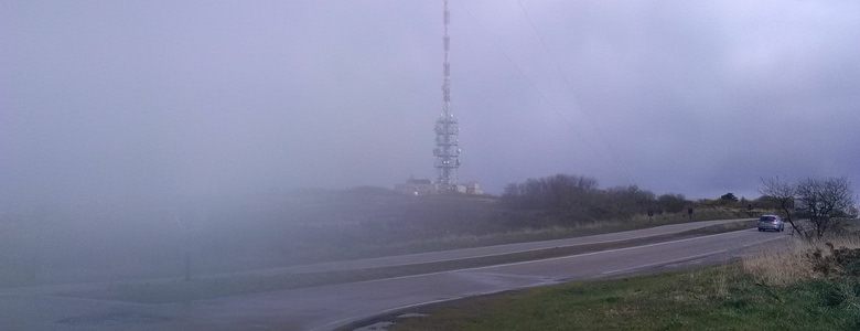 Je passe le Roc Tredudon (390 m d'altitude mar plij) sous une petite averse de neige.