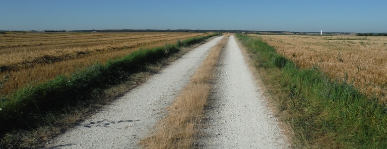 Départ à 8 h 30 après une nuit bien reposante. On trouve rapidement une piste blanche très bien balisée qui nous mène vers Saint-Jean-d’Angély, en alternance avec quelques portions de bitume sans circulation. La vallée de la Boutonne est ombragée et reposante.