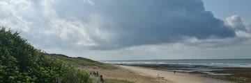 Toujours sur mon fidèle vélo tout-chemin, j'ai poursuivi sur la rive le long du chenal puis la côte : je n'y pensais pas mais il s'agit de l'Eurovélo 1, aussi appelée la Vélodyssée en France ou encore l'Atlantic Coast Route dans sa globalité. On arrive alors sur le quartier et la plage des Minimes, où je peux enfin dire que j'ai atteint l'océan !