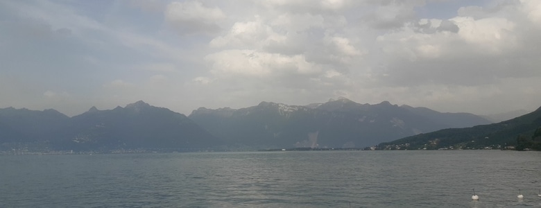 Le jour du départ est enfin arrivé ! Je prends le train au départ de Clermont-Ferrand le samedi 19/06 à 6hr du matin, après plusieurs changements, j'arrive à Evian-les-Bains à 13h30. La commune de Saint-Gingolph (départ historique de la grande traversée des Alpes) est maintenant toute proche, mais il me faut attendre un bus pour la relier qui est à 17h30. Je patiente en visitant la ville et en m'offrant un petit resto puis petite pause digestion en contemplant le lac Léman, la chaleur est accablante aujourd'hui !