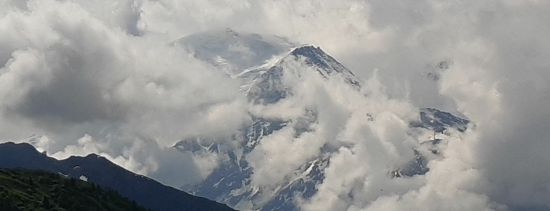 Arrivé à Servoz après une longue descente, je me dirige au camping qui se trouve être fermé, j'apprends que son propriétaire est décédé... Je consulte alors ma carte et repère un éventuel spot de bivouac, il se trouve sur mon trajet du lendemain à 1h de marche environ. C'est partit ! Malheureusement en chemin l'orage est en avance et éclate juste au-dessus de moi (je suis encore dans Servoz). Je me mets vite à la recherche d'un abri, la grêle s'en mêle et je me retrouve malgré mon équipement de pluie complètement trempé en très peu de temps. Pas un abri en vue c'est compliqué, je finis par me mettre sous l'escalier dans la cour d'une petite entreprise de bâtiment. Je patienterai ici une bonne demi-heure, beau moment de solitude !