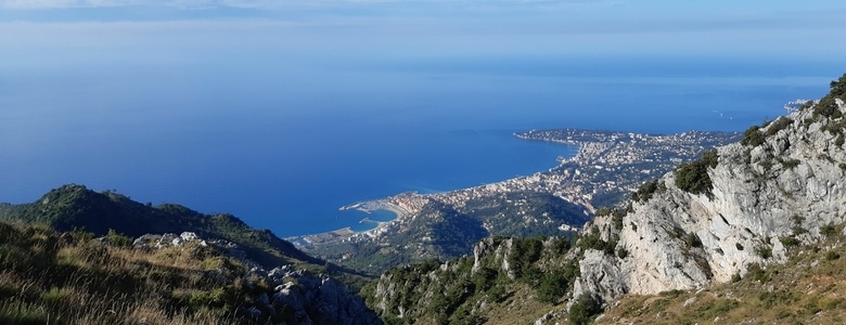 Le col du Razet offre une première vue sur Menton et la mer, la première d'une longue série. Evidemment, plus j'avance, plus la mer grossit et plus la sensation d'accomplissement se fait grande. Ce dernier sentier offre quelques beaux emplacements pour un dernier bivouac avec vue sur la mer, les meilleurs selon moi se situent juste après la permaculture de Castellar sur la droite. ou bien au col du Berceau.