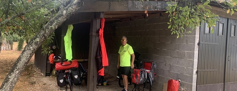 Mise en route arrosée . Il a beaucoup plu à midi mais nous étions au sec. La première journée nous a beaucoup plu. À demain .