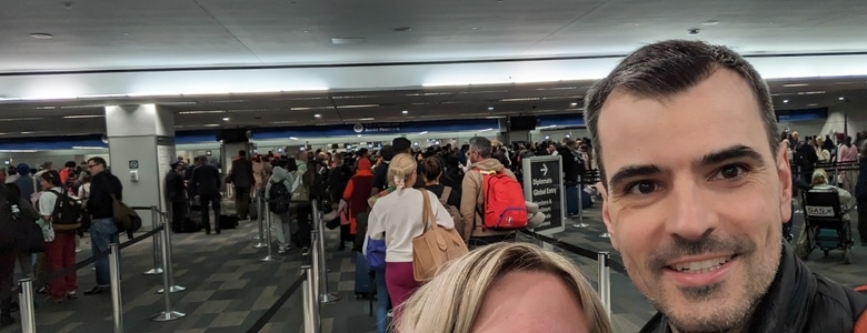 Après 11h de vol environ entre Londres et San Francisco, vol qui s'est bien déroulé (la bouffe était bonne, passagers pas trop boulets et aucune turbulence !) malgré une petite gerboulette (comme dirait ma belle sœur Marlène P) pour Julien en fin de vol; nous voici enfin à destination.