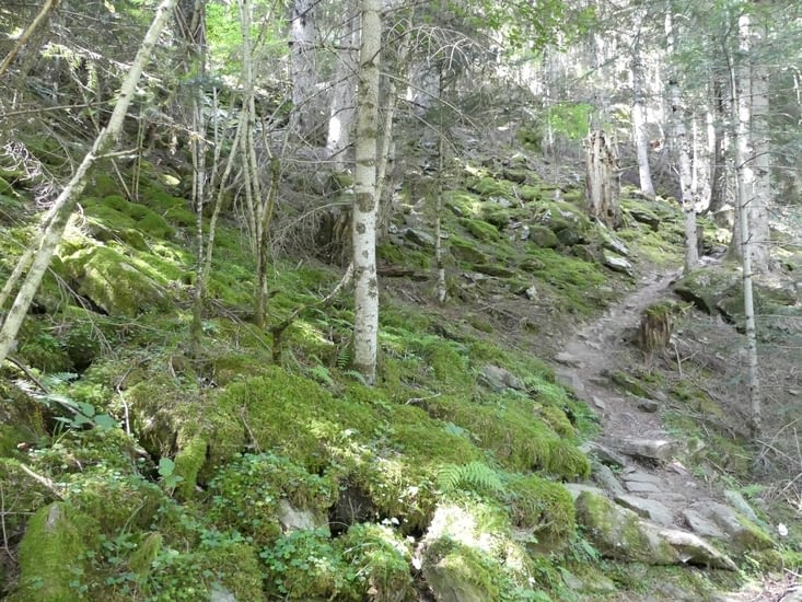 Au début ... ça va... Mais ensuite cela se corse, le chemin est pentu, souvent rocailleux mais les paysages lorsque, la forêt veut bien nous laisser les voir, sont sublimes.