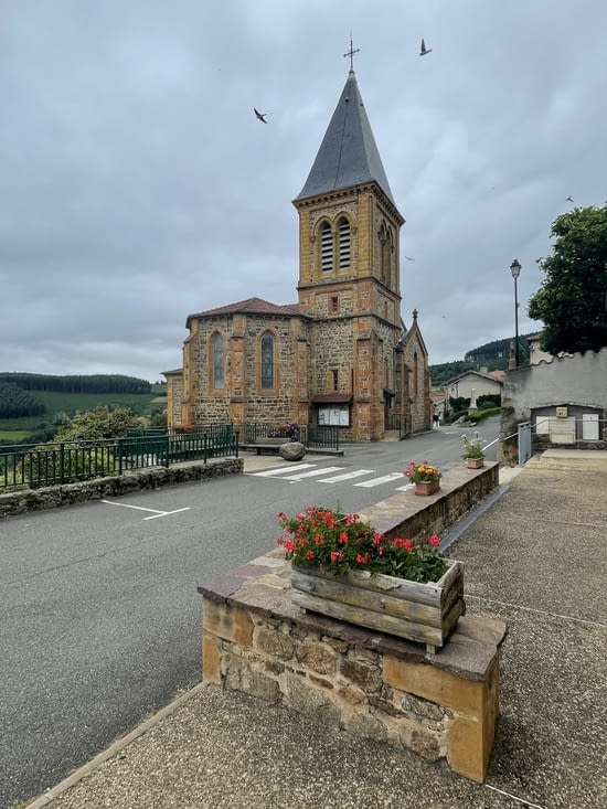 78 km. 1200 m D 3 heures de grimpette le matin 20 km de descente jusqu’à Feurs. Fête de village et bière inespérée à Marcoux . Puis encore une sévère montée avant de trouver un bivouac sympa .
