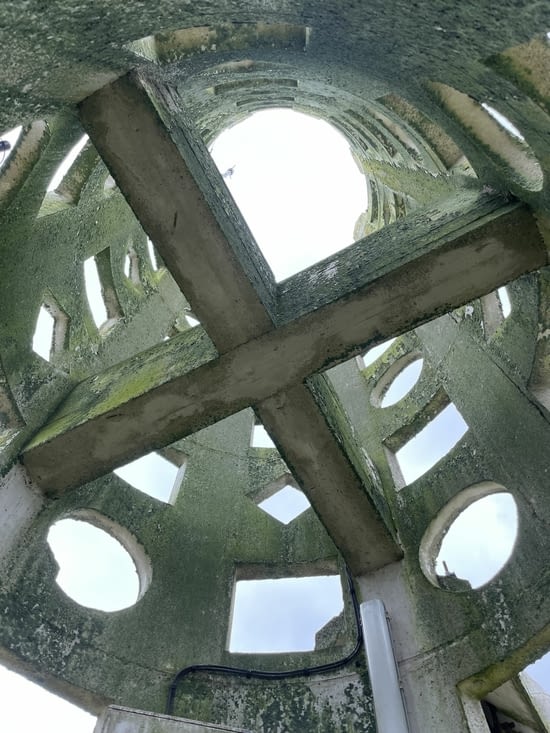 Le béton s’est dégradé d’autant plus vite que le sable contenait beaucoup de morceaux de coquilles de coquillages et était poreux, m’a expliqué Lawrence. Quand l’eau atteint le ferraillage, c’est la gangrène du béton.