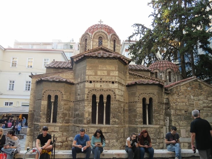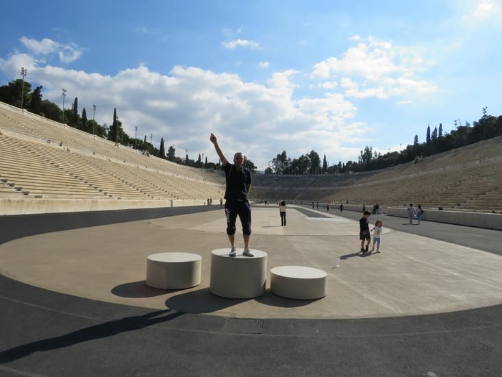 On se régale avec un Gyros, un verre de vin blanc et une bière en terrasse.