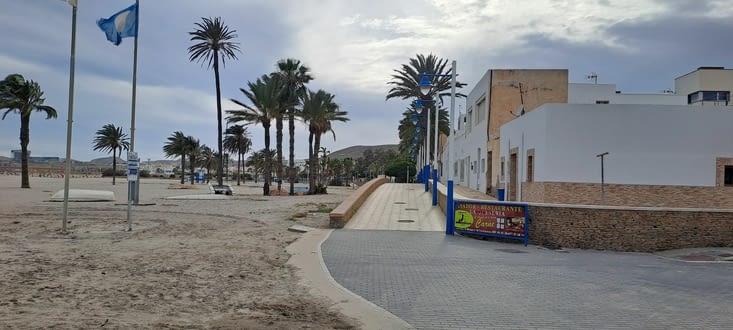 Encore beaucoup d’autoroute aujourd’hui pour cette etape de 460km. Notre sieste habituelle de 14 à 15h00 nous a permis de cd’interrompre la monotomie de la route. A 17h00 le temps change: du soleil, une température de 22 degrés mais...beaucoup de vent! Vers 18h00 nous arrivons au parc naturel de Cabo ou Gatar-Nijar. On se trouve à 40km d’Almeria.