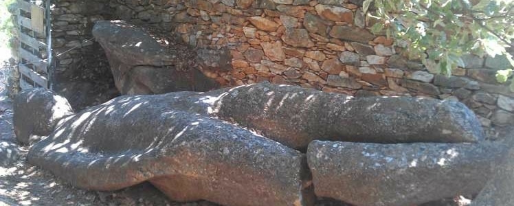 Arrivés aux kouroi, nous rejoignons la civilisation, c'est-à-dire quelques touristes automobilistes en tongs. Après les avoir jugés silencieusement du haut de nos chaussures de randonnées, nous repartons vers Potomia sur un sentier dallé de marbre, entre deux murets de pierre.