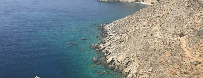 Cette seconde section démarre du bout de la plage, et continue à flanc de falaise jusque'à Loutro.