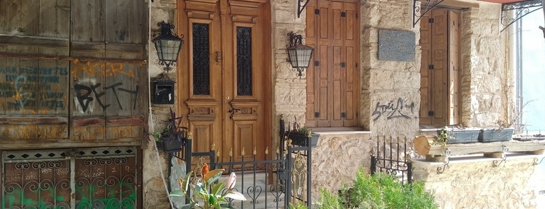 En attendant, nous sommes maintenant dans le quartier de Keramikos..On retrouve de petites rues piétonnes baignées par le soleil du matin, et par des arbres bien verts encore en cette saison.C est vraiment sympa et très propre.Les cafés restaurant ont sorti les chaises et les tables et c'est bien tentant de s y arrêter...ça a l air un quartier calme et branché mais sans les graffitis et la circulation d Exarchia.On y rencontre même un distributeur d' huile d olive ( produit de base ici, en général excellente).On y voit aussi quelques maisons anciennes, un peu dans leur jus.