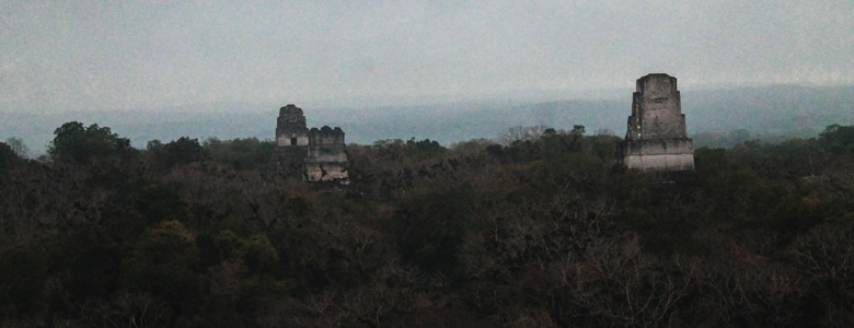 Nous avons payé 100 qz de transport et 250 qz de droit d'entrée car nous voulons voir le lever de soleil. Une heure de route et nous entrons dans le parc national de Tikal à la lampe frontale. Nous sommes dans un des rares site UNESCO à être classé au titre archéologique et naturel. Nous traversons la forets au son des insectes.Le guide, lors des quelques arrets au pied d'édifices que nous devinons, donnes des éléments de contexte sur cette capital. Édifiée plusieurs siècles avant notre ère et prospère jusqu’au 10ème siècle. Avant de s'effondrer. Situe en pleine foret, 70 % du site est mis à jours. Nous escaladons la pyramide 4. Installés à 60 mètres face à l'est, nous sommes au niveau de la canopée. A 05h30, alors qu'apparaissent les premiers contours des arbres, on perçoit des grondements sourds. Ce sont les grognements des singes hurleurs. Puis un assourdissant concert d'oiseaux, à commencer par les perroquets vert, les toi dans et autres droguons, le soleil est caché derrière une épaisse couche de nuage mais l'ambiance est magique. Les sons de la nature sur un paysage de forets tropical au travers de laquelle percent des monuments gigantesques.
