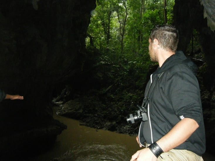 Lorsque l'on arrive devant l'entrée de la grotte nous sommes impressionnés par la grandeur de la grotte , le guide nous explique que la partie gauche n'est pas accessible au public car c'est un cimetière maya , nous partons donc vers la droite. c'est moins glissant qu'hier mais il faut quand même faire attention !