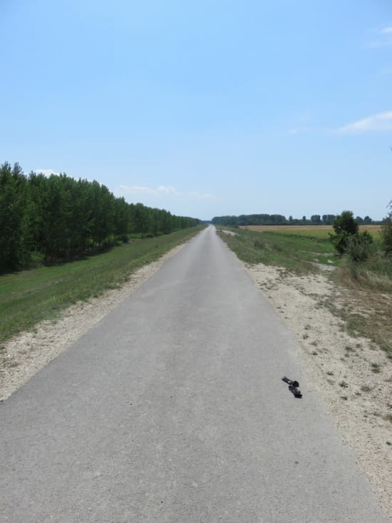 A deux, on reprend notre rythme: grosse pause du midi près du Danube. On fait des courses de produits frais', on dort en sauvage, on retrouve nos copains les moustiques et les douches avec une gourde. Les paysages étaient assez monotones...