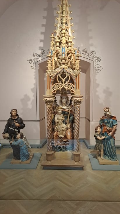 Notre premier arrêt sera le musée ZSOLNAY ou se trouve une superbe collection de pièces de céramiques. Fabriquées à Pecs par la société du même nom. Elles sont connues et reconnues dont cette fameuse fontaine aux canards située au centre ville. Elle a été conçue pour l'exposition de Milan en 1906. Un enduit particulier fait à base d'eosine y a été inventé et qui permet de donner un éclat particulier aux céramiques.