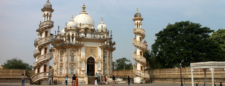 Je m'installe tranquillement. Je vais juste faire une petite balade le long de Railway Station Road. Je passe une porte magnifique qui me révèle au loin le splendide Mahabat Maqbara, le mausolée d'un nabab du 19e siècle. Je me réserve le plaisir de visiter cette splendeur demain.