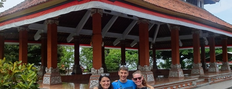 Nous avons commencé la journée par la visite du temple Pura Rambut Siwi, ce temple a la particularité de se trouver au bord de l'océan. Il est entouré de montagnes, d'eau et de rizières.