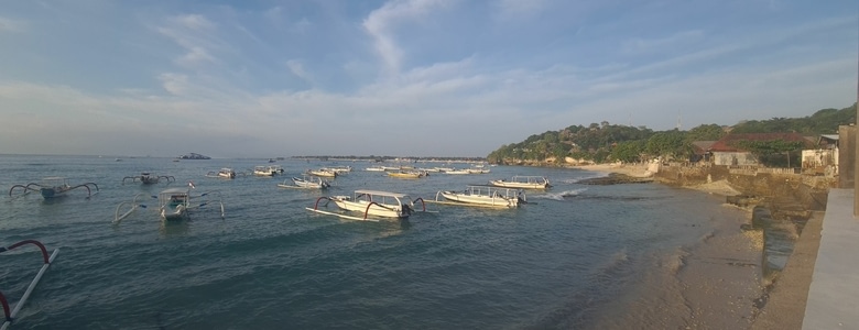 Après une traversée agitée, que ce soit sur les horaires, l'organisation ou la mer, arrivée à Nusa Lembongan.