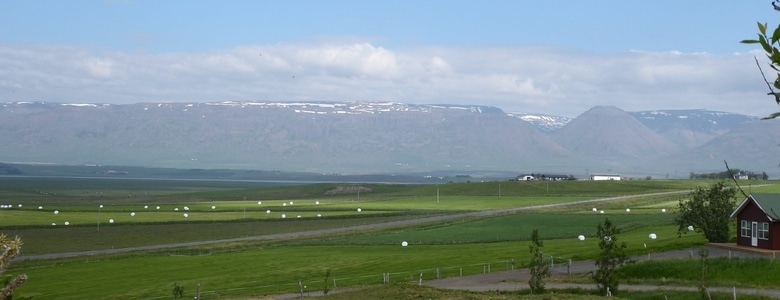 La brume ne s'est toujours pas levée quand nous reprenons la route, mais on arrive quand même à distinguer le fjord. La route emprunte trois tunnels, de 3, 7 et 4 km de long. Cela évite un long détour de 60 km. Nous prenons de l'altitude et nous voici maintenant au-dessus des nuages ! Nous nous régalons de nouveau les yeux et traversons bientôt l'estuaire de Skogarfjordur, avant d'arriver à notre destination finale : un chalet posé sur le terrain d'une ferme d'équitation.