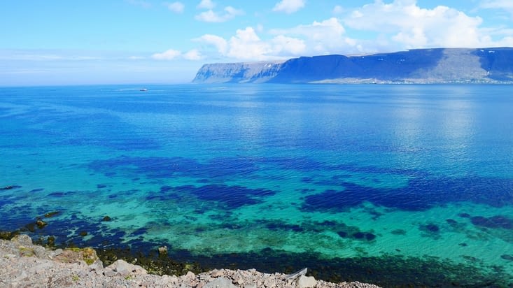 Dernière journée dans la vaste contrée des fjords du nord-ouest et déjà l’avant dernière grosse étape du voyage. Après la journée précédente placée sous le signe de la brume nous nous réveillons sous un grand soleil et découvrons également une autre facette des fjords, celle d’une eau crystalline et d’une visibilité très lointaine. Cap à l’extrême ouest de cette région avec tout d’abord les falaises de Latrabjarg puis la plage de Raudasandur. Avec comme chaque jour des panoramas remarquables tout au long de la piste, car oui aujourd’hui ce fut quasiment exclusivement de la piste. Sans oublier également une épave d'un bateau datant de 1912 échouée au fond d’un fjord.