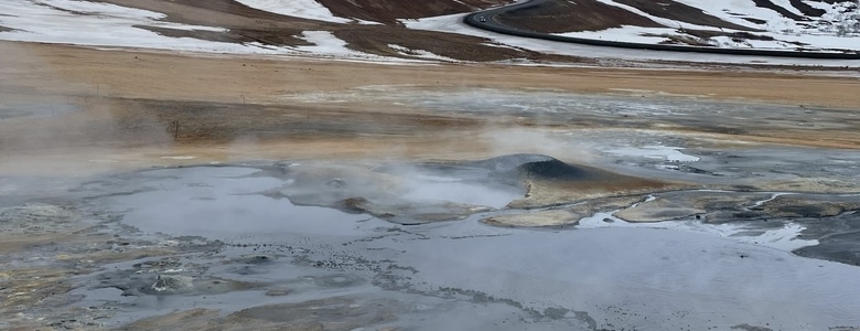 On a visité ce grand champ Geothermal, super beau au pied d’une montagne, avec pleins de couleurs incroyables. Ici vu la chaleur des sols la neige ne tient pas 😂