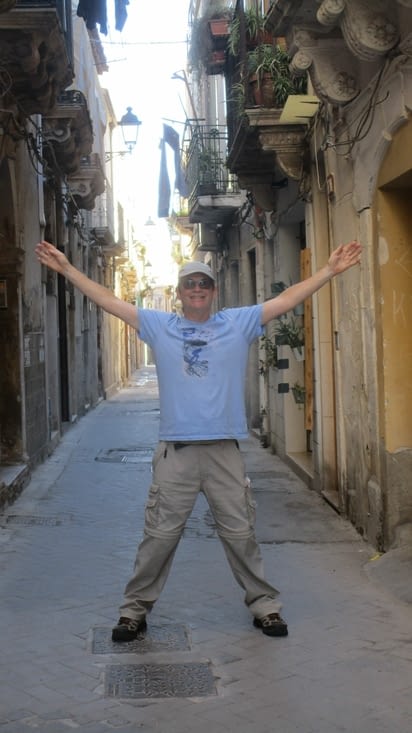 Nous partons très tôt pour le train pour Siracusa, 35 minutes pour s’y rendre. On bavarde avec des français tout le trajet. On se promène toute la journée . Une belle petite ville, super propreté et personne qui veut nous écraser avec leur véhicule. Un bon repas pour le dîner, Rėjean fait des figures orgasmique en mangeant . Nous repartons en fin d'après-midi pour Pozzallo. On attend le train tranquillement et France fait de la lecture. Après un bon bout de temps, un contrôleur nous demande en Italien ou allez vous. Il nous dit que l'on n'est pas sur le bon quai. Une chance on ne sais pas ou on serais rendu? Le sud de la Sicile est très agricole et beaucoup plus rustique. Pozzallo est une ville super tranquille. On va pour les billets de bateau. Surprise nous avons un bateau seulement demain soir à 21:30. Donc on relaxera ici demain.