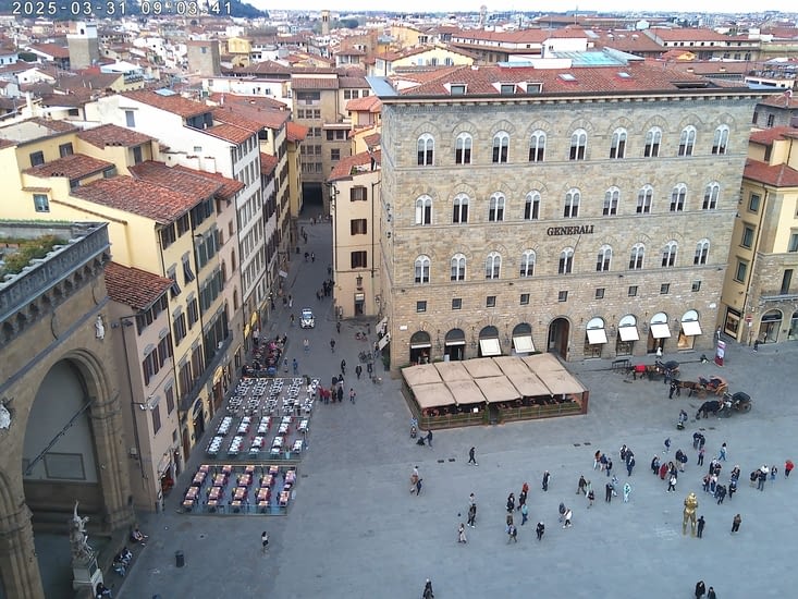 Nous dormons plus tard ce matin. Les musée sont fermés le lundi mais on pourras visiter le Palazzio Vecchio. Nous visitons le palais en 2 heures. Nous montons 430 marches pour la tour. Un beau point de vue sur La ville et la basilique. Le palais Vecchio est intéressant mais la salle d’audience est a voir. Leonard de Vinci était en compétition contre Michel Ange pour la décoration. Il y a encore plein de musée et d’église a visité mais nous passons notre tour et profitons du beau temps. Nous marchons au hasard dans la ville. Nous allons au belvėdere de Michel Ange, une vue imprenable sur la ville. On y retourne le soir pour voir la ville de soir et le couché de soleil. Beaucoup de monde et d'animation. On revient vers 21:00 bien fatigués. Hier a notre retour un fourgon avec des dizaines de policier devant notre hôtel. La réponse à notre questionnement était l’équipe qu’une équipe de soccer compétitive a Florence arrivait par bus et avait une protection. A demain.