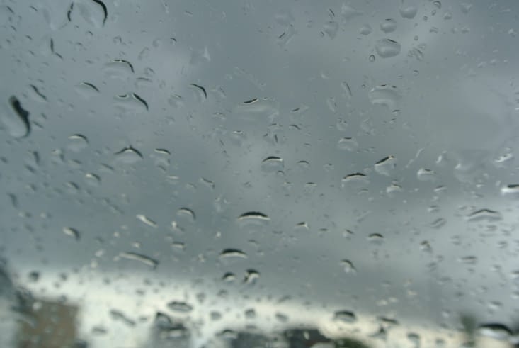 Nous sommes donc partis vaille que vaille mais nous avons effectivement eu un temps pourri ! Pas seulement vent et pluie, mais orage et grêle aussi ! Tant qu'à faire !