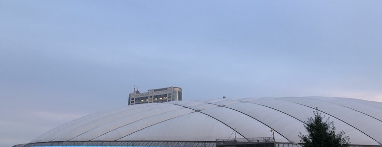 Un complexe de divertissements en pleine ville comprenant un stade, un parc d'attractions et un centre commercial