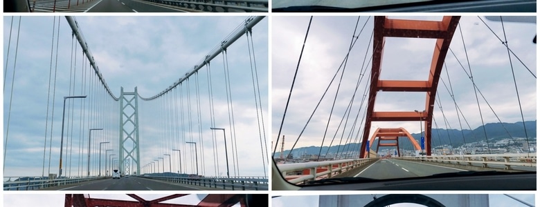 Après le Koyasan, le trajet en voiture vers Shikoku nous fait traverser Osaka, 3e grande ville du Japon, par un dédale de voies rapides aériennes. Nous survolons des quartiers entiers de grattes-ciel, un immense port industriel hérissé de grues et de tours de raffineries, et un entrelacs de routes... Contraste maximum avec la sérénité du Koyasan !