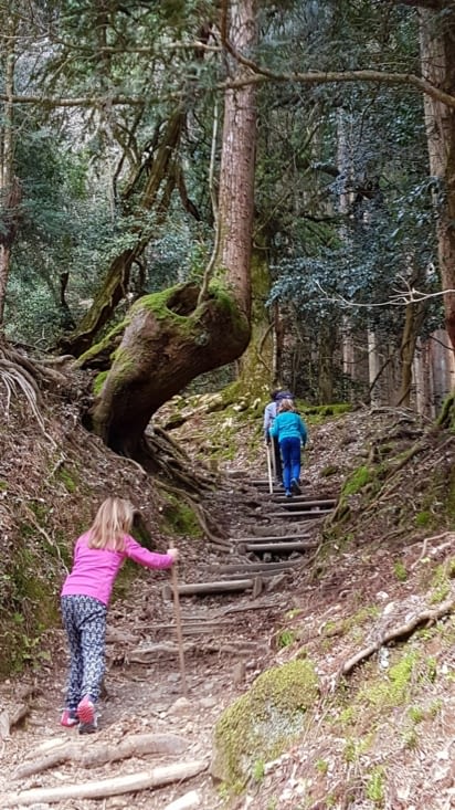 Une journée aux portes de Kyoto, dans la forêt. Nous avons grimpé pendant 2h en empruntant un chemin de pélerinage menant à un grand temple caché dans la forêt. Les forêts japonaises dégagent une atmosphère unique, magique et mystérieuse avec des arbres droits immenses, la mousse et les racines qui sortent de terre et le bruit des ruisseaux. C'est apaisant et revigorant. C'est une journée qui restera.