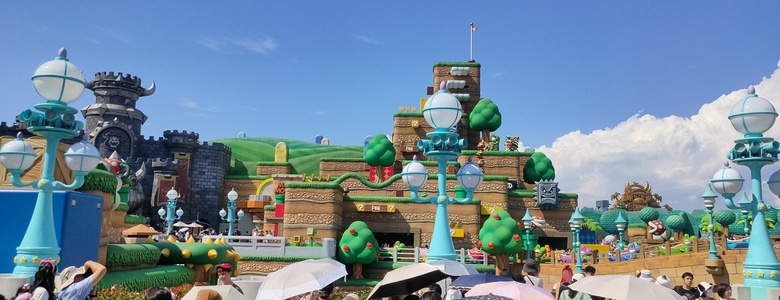 Après un réveil tôt pour petit-déjeuner, nous sommes partis en métro pour USJ. Arrivés devant le parc, nous sommes rentrés puis nous sommes allés récupérer dans une boutique un bracelet interactif Nintendo. Celui-ci permet d'avoir accès à des jeux exclusifs, et interagir avec le paysage. Notre choix s'est porté sur Toad ! Nous avons ensuite fait la queue pour entrer dans la zone de Super Nintendo World. Comme nous avions pris des billets coupe-file, nous avions des créneaux pour faire certaines attractions. Nous avons donc commencé par l'attraction Mario Kart Koopa challenge dans laquelle nous étions immergés dans une véritable course avec des lunettes de réalité virtuelle. Nous avons continué avec Yoshi Adventure, attraction plus tranquille pour observer la zone. Est venue ensuite l'attraction la plus appréciée par nous deux dans cette matinée : Donkey-Kong. L'objectif était de récupérer la banane dorée en réalisant un parcours sur rail. Nous avons fini cette matinée en faisant des mini-jeux avec le bracelet Toad.