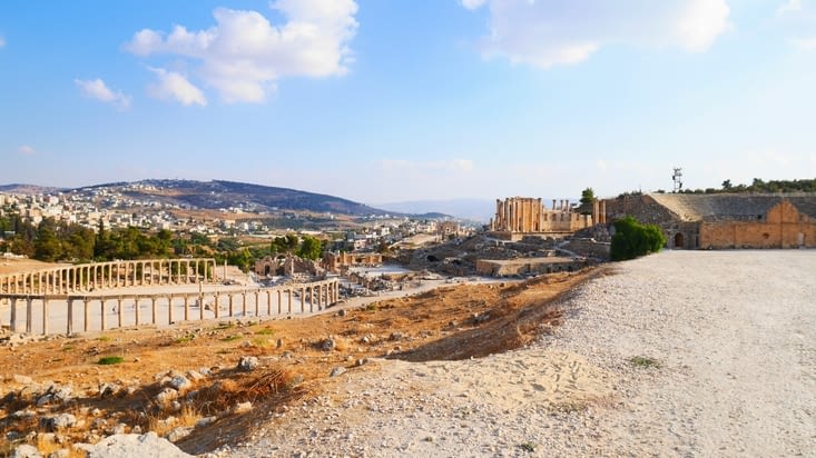 Après nous être rapprochés de la frontière irakienne mais également syrienne (reconnaissable aux nombreux camps de réfugiés et à la présence accrue de l’armée et de la police -nous nous sommes d’ailleurs fait contrôler-), nous voici de retour à l’ouest et plus particulièrement à Jerash pour conclure en beauté cette première journée pleine en Jordanie.