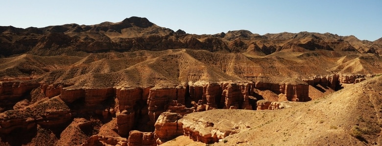 At the entrance of the Charyn National Park we meet a couple of Israeli who suggest us to share a taxi to go to the main view of the Canyon. When we get out of the car we are captivated by the hugeness and the colours of the canyon. It is 80 kilometers long and until 300 meters deep at some parts. The part which can be visited is 3 kilometers long and 100 meters deep, it is known as the valley of castles named according to the shapes of the rocks. It is said that this is a miniature version of the Great Canyon. Whaou!