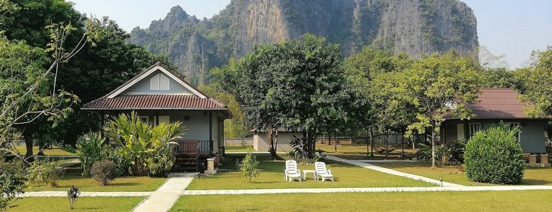 Après une nuit à Luang Prabang nous rejoignons Vang Vieng et ses pics karstiques (encore ?). Une fois passées les cinq heures de van sur des routes tant sinueuses que pierreuses, nous enfourchons nos vélos pour découvrir les grottes et les points de vue de la région.
