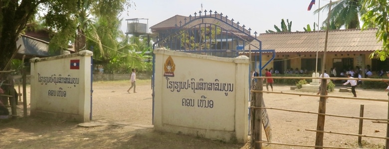 Kai, le gérant de l’hôtel, très sympa, nous emmène à l’école primaire de sa fille, juste à côté. Il nous explique que les écoles publiques ont vraiment très peu de moyens ici. Le propriétaire de l’hôtel, un homme riche et philanthrope, très apprécié sur l’île, soutient financièrement l’école que nous allons visiter...