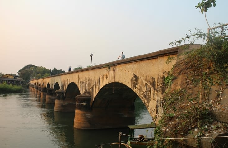 A proximité du pont Français est exposée une vieille locomotive toute rouillée. Elle a fonctionné jusqu'à la seconde guerre mondiale sur la ligne construite par les Français pour contourner les chutes du Mekong qui rendaient le commerce difficile au sein de l'Indochine coloniale.