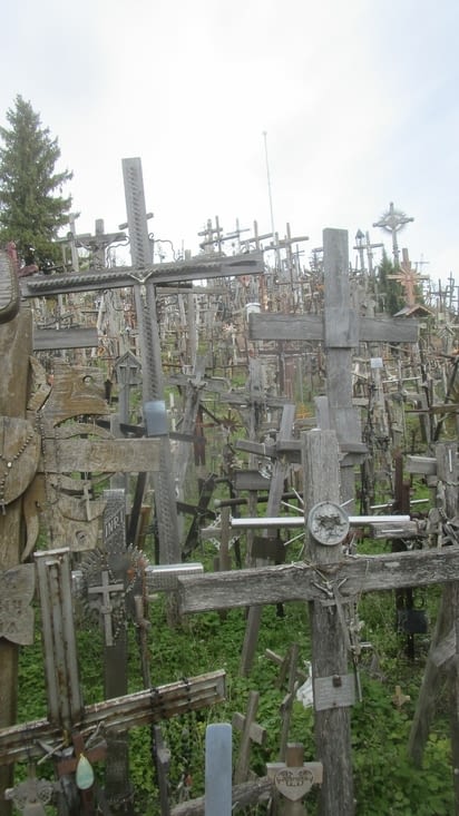 On se bas encore avec le poêles à induction. On a beau essayer tout les boutons, on y arrive finalement. Au déjeuner, Réjean fait des rôties dans le chaudron. Il fait 4°C, ce matin avec un beau soleil. Nous allons voir la cathédrale et marchons dans une piétonnière dans le centre de la ville sur plus de 1km certain. Tout les musées sont fermés le lundi. Nous allons à la colline des croix. Des milliers de croix, chapelets accrochées. Le pape Jean-Paul II est venu célébrer une messe ici. Puis nous roulons jusqu’à ville de Kaunas. Grosse ville, la deuxième de Lituanie. Nous allons directement à la mini maison. C’est vraiment dans le fond d'une cours. Mignon comme tout et quand même confortable. Une petite promenade nous fait découvrir des maisons sublimes de riche sûrement dans le quartier huppé. Un bon souper et on relaxe. A demain.