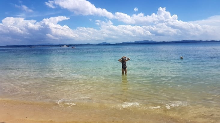Nous sommes arrivés le matin sur cette ile normalement déserte. Mais là, C'était les vacances de la fin du ramadan, alors il y avait du monde. Nous n'avions rien réservé. Nous avons laissé les filles et sommes partis faire le tour des hôtels. On a eu un peu peur car c'était très très sommaire ...et puis on a débarqué dans une petite crique. En 1 minute, on a décidé qu' on resterait là. Un lieu caché, une plage de Robinson. Des hôtes tellement gentils, une cuisine maison tellement bonne et un bungalow avec une vue tellement belle qu'on en a oublié la salle de bain plus que rudimentaire ....à L'eau terreuse !! ( il faut admettre que jouer aux robinsons oblige à quelques sacrifices niveau confort). Nous sommes restés là entre la balançoire, le restau, les délicieux banana juice et les plages désertes . Aucune Wifi. Les vacances !!! Le temps qui s'oublie.